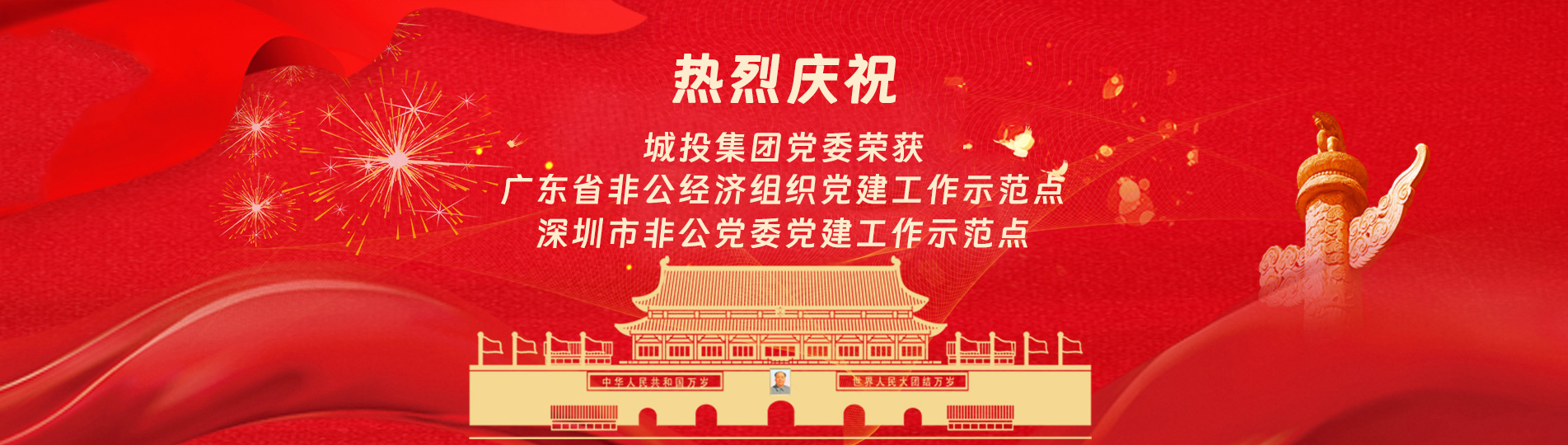 在上級黨委的正確領導下,在城投集團的大力支持下,集團黨委緊緊圍繞企業發展戰略,將黨建引領核心貫穿始終,以五心工程(即思政建設核心工程、經營發展中心工程、企業文化向心工程、黨建品牌匠心工程、服務基層愛心工程)為抓手,大膽探索,勇于突破和創新,不斷形成城投黨建特色,有效輸出城投實踐經驗,充分發揮紅色引擎作用,先后獲得深圳市非公黨委黨建工作示范點深圳市兩新組織黨建工作示范點、深圳市文明單位深圳市先進基層黨組織、廣東省非公有制經濟領域黨建工作示范點等榮譽稱號。